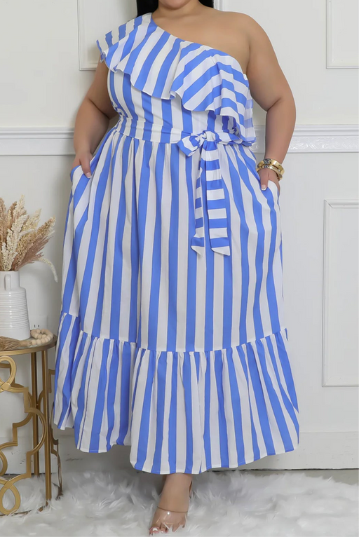 D-LUX$78.00| /Non-stretch dress One shoulder Ruffles Self-tie waist strap Pockets 100% Polyester Hand wash cold Model is wearing a 2X MODEL STATS: Height: 5.6"...