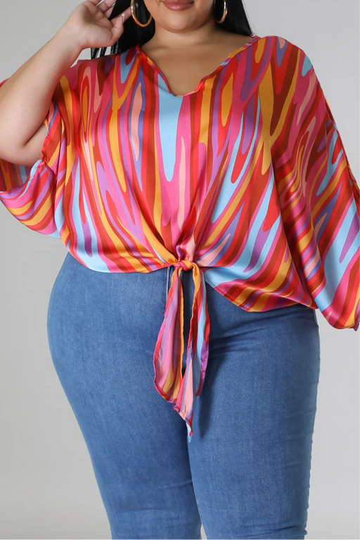 D-LUX$46.00| /Non-stretch top V neck Long sleeves Self tie waist No closure 100% polyester Hand wash cold Model is wearing a 2X MODEL STATS: Height: 5....