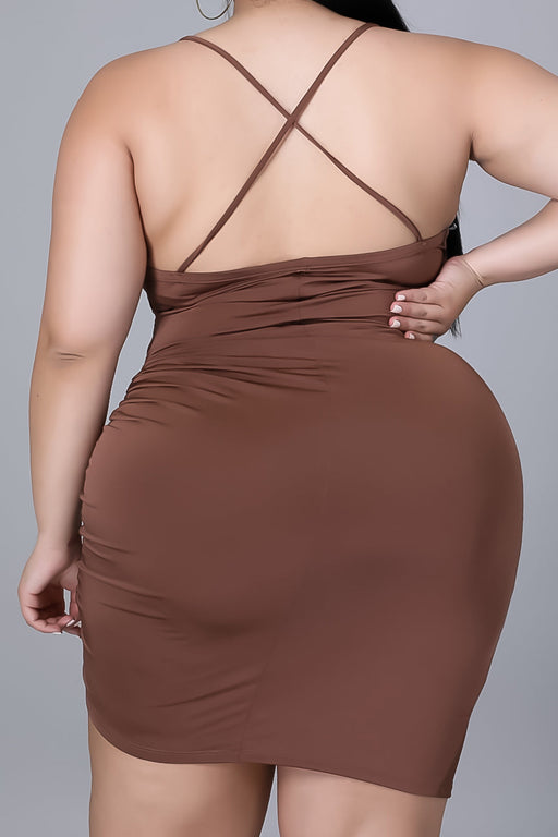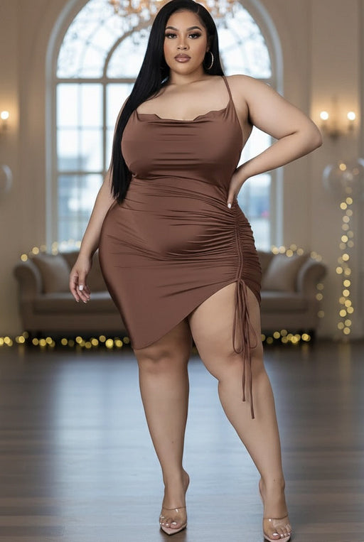 D-LUX$72.00| /Stretch dress V-neck Sleeveless Ruched 95% Polyester 5% Spandex Hand wash cold Model is wearing a 2X MODEL STATS: Height: 5.6" / Bust:45" / Waist:...